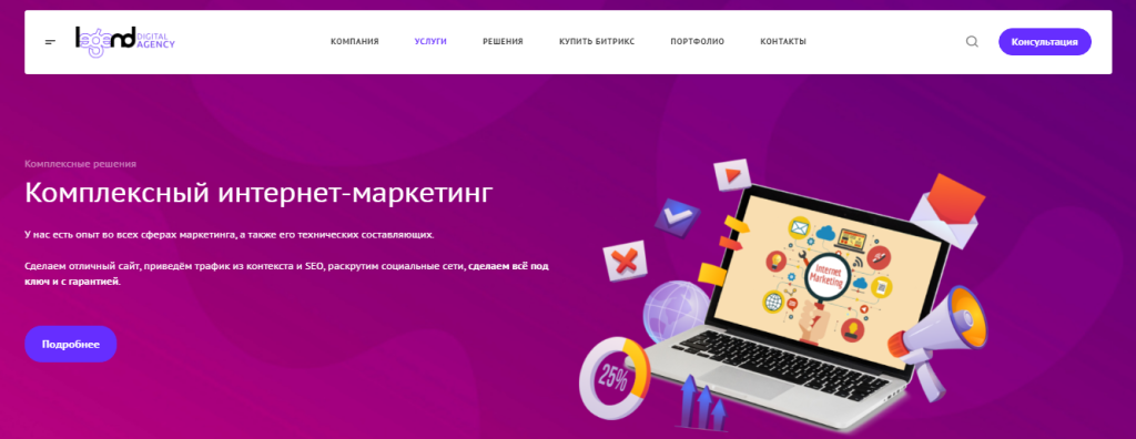Если вы находитесь на этапе разработки названия вашего бизнеса, уже сейчас обращайтесь в нашу компанию "Legend". Мы поможем вам начать бизнес в интернете так, чтобы он начал приносить свои плоды как можно скорее. Услуга комплексного интернет-маркетинга включает в себя разработку сайта, SEO-продвижение, внедрение CRM, настройку контекстной и таргетированной рекламы, ведение аккаунтов социальных сетей и многое другое. Ознакомьтесь с примерами наших работ, чтобы у вас не осталось сомнений обратиться именно к нам!