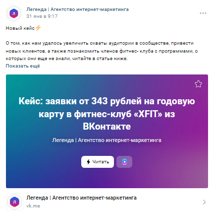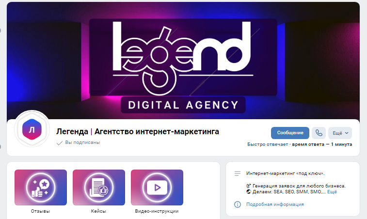 Если такой формат работы для вас не подходит (не хватает вдохновения, времени и т.д.) — воспользуйтесь услугой по SMM от компании "Legenda". Мы поможем сделать бренд узнаваемым, привлечь к бизнесу новых клиентов и увеличить объемы продаж с помощью социальных сетей ВКонтакте. Чтобы оценить проделанную нами работу с клиентами, вы можете посмотреть кейс по SMM продвижение сети студий лазерной эпиляции «Инфинити».