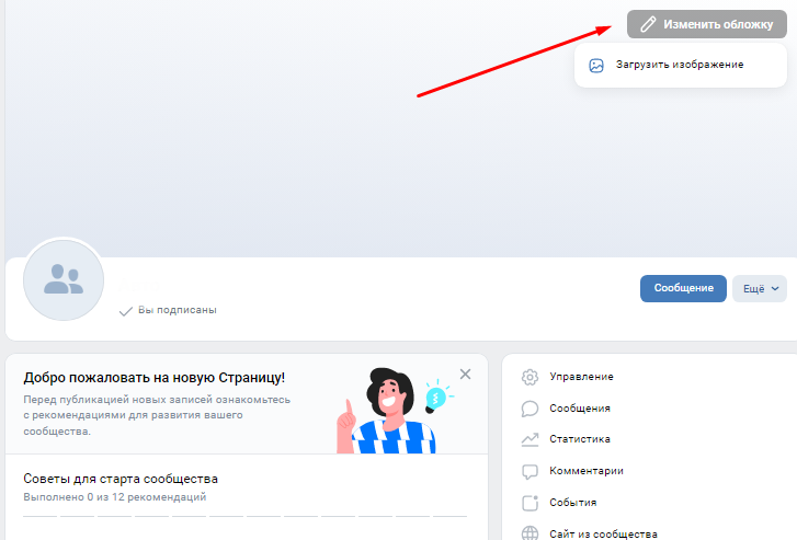 В вк есть возможность добавить обложку (картинка, которая будет расположена в «шапке»).