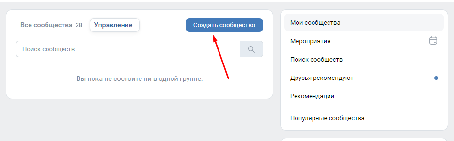 Заходим в «Группы» и нажимаем на кнопку «Создать сообщество».