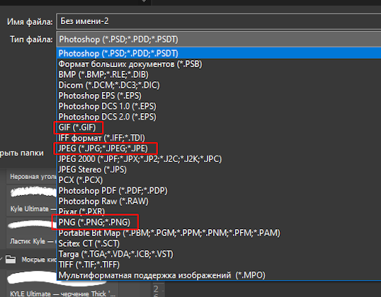 Функционал сохранения файла в указанных форматах в Adobe Photoshop