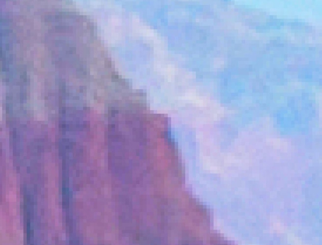 Растровый пейзаж без увеличения и его фрагмент при увеличении 1200%