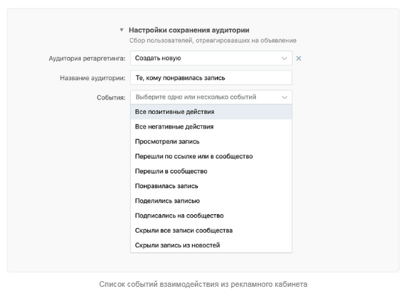 Вовлечение ВКонтакте. Учитывает подписку на рассылки, вступление в группы, участие во встречах, заполнение формы, рекламу товаров в сообществах, переходы в приложения.
